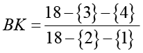 Число 18 в числителе и знаменателе – поправочный коэффициент. Значения ВК изменяются в диапазоне от 0,2 до 5,0 баллов.
